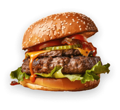 Double taker burgerBread, 120g Meet, Cheese, BBQ Sauce, Bacon, Lettuce, Pinkles and Red Onion.